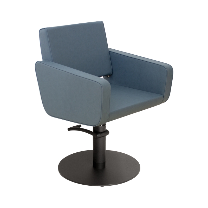 Frisierstuhl mit hydraulisch arretierbarer Pumpe und Superblack-Basis. Alle Skai-Farben erhältlich.