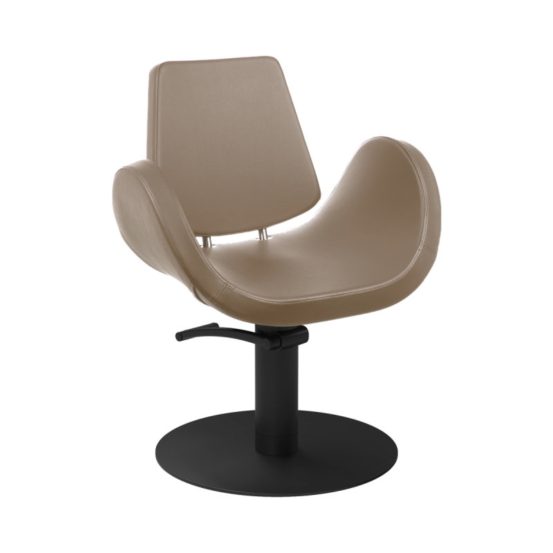 Frisierstuhl mit hydraulisch arretierbarer Pumpe und Superblack-Basis. Alle Skai-Farben erhältlich.