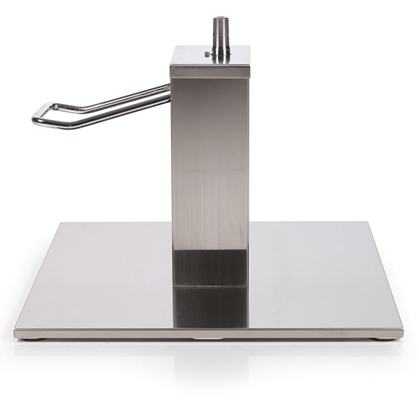 Base Square ist eine Basis aus Stahl und poliertem Aluminium mit abschließbarer Hydraulikpumpe und Pumpenabdeckung