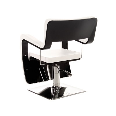 Dieser Drehstuhl hat eine glänzend schwarz lackierte Struktur und ist mit Polyurethan-Material gepolstert, das mit Skai (in verschiedenen Farben erhältlich) überzogen ist. Die Basis ist aus poliertem Aluminium mit Hydraulikpumpe mit Block. INTERNATIONALES DESIGNPATENT.