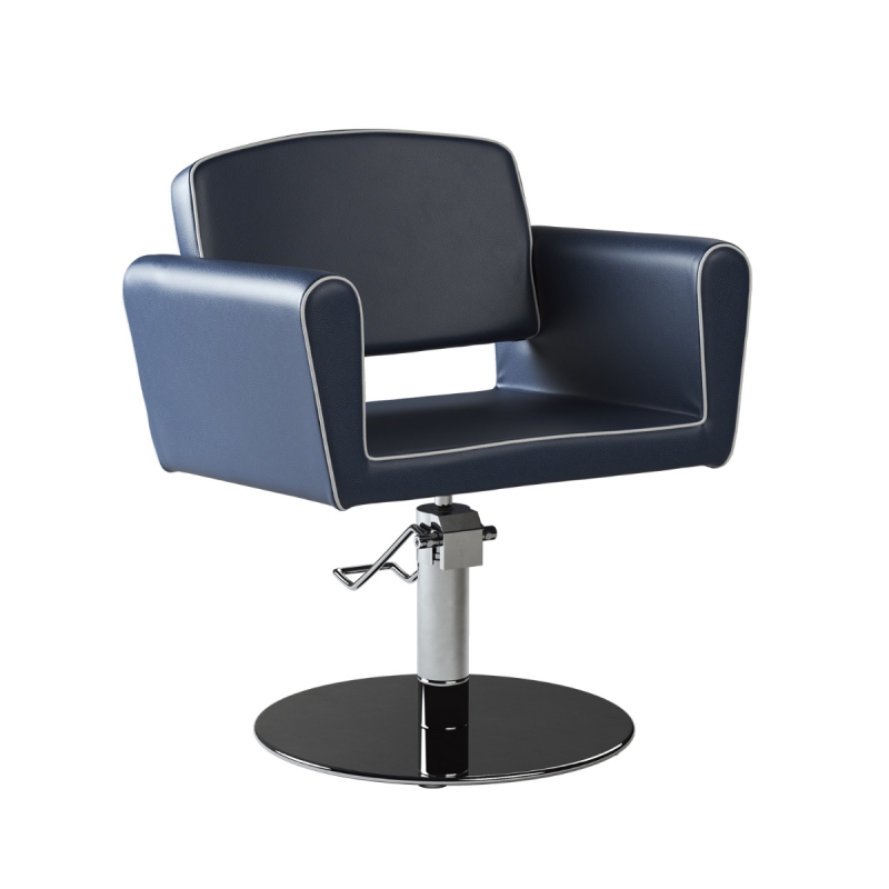 Blueschair Roto ist ein Styling-Salonstuhl mit hydraulisch arretierbarer Pumpe und Roto-Basis aus Stahl. Alle Skai-Farben für Stuhlsitz und Keder erhältlich.