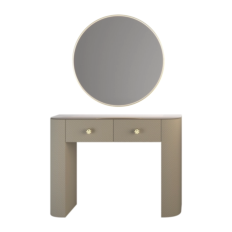 Rahmen in den Farben Gold, glänzend Schwarz oder Chrom mit Frontbeleuchtung Pipe LED verfügbar. Integrierte Steckdosen. Glasplatte in den Farben Schwarz, Weiß oder Cappuccino erhältlich.