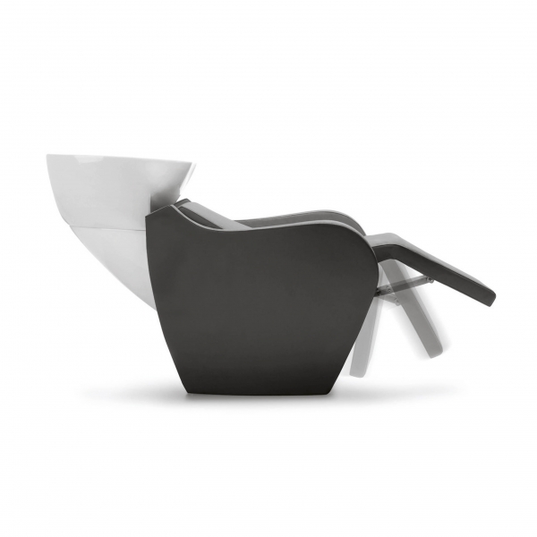 Einzelwaschanlage mit kippbarem und schiebe Becken, elektrischer Beinstütze. Schwarzen Bezug.
