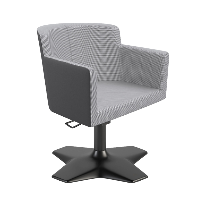 Friseurstuhl mit feststellbarer Hydraulikpumpe und schwarzem Cross Fuß. Erhältlich in allen Skai-Farben.