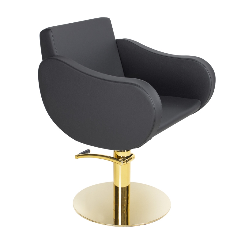 Frisierstuhl mit hydraulisch arretierbarer Pumpe und Supergold-Basis. Schwarzen Bezug.