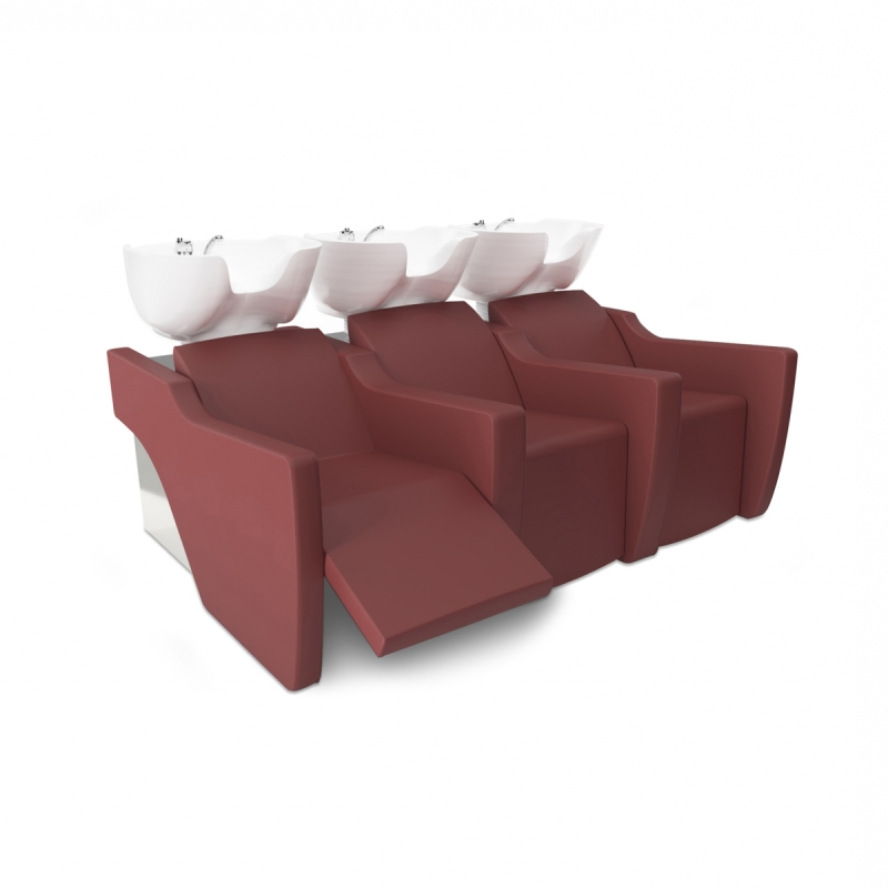 Drei-sitzer kompakt waschplatz mit kippwanne. Alle Skai-Farben erhältlich.