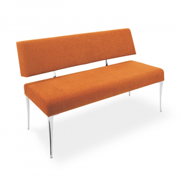 Dieses Dreisitzer-Sofa für den Wartebereich hat eine Holzstruktur, die gepolstert und mit Skai- oder Samt (in verschiedenen Farben erhältlich) bezogen ist. Rückenlehnenträger und Füße aus poliertem Aluminium.