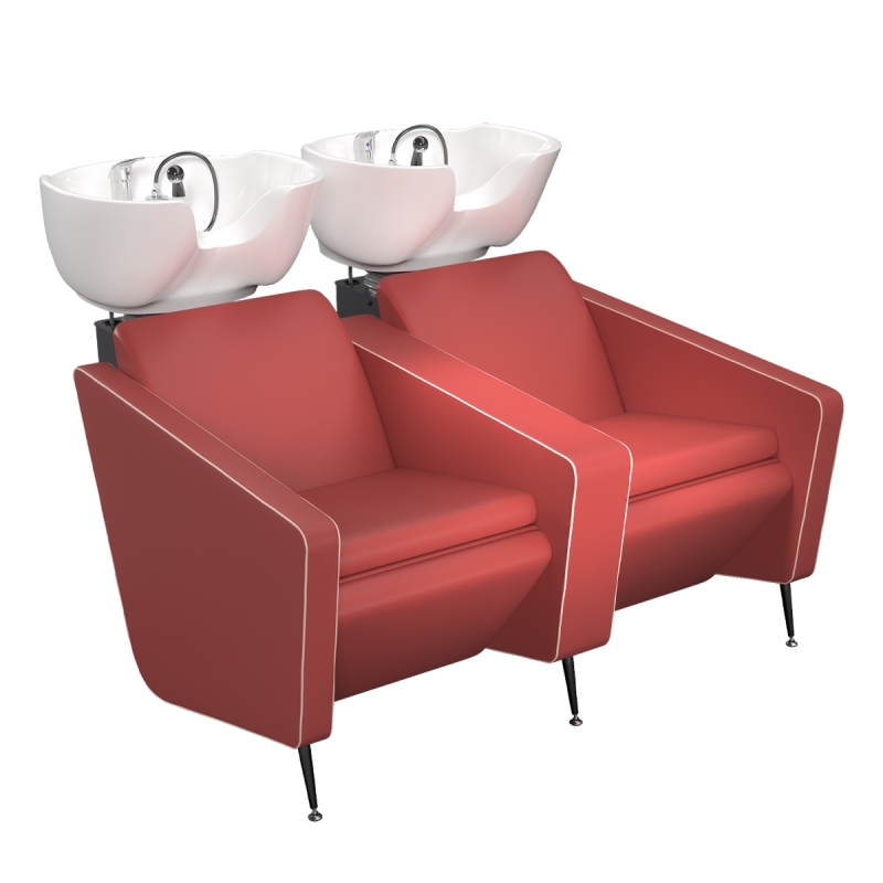Doppelwaschanlage mit kippbarem Becken. Erhaltlich in allen Polsterfarben, Sitz und Piping.