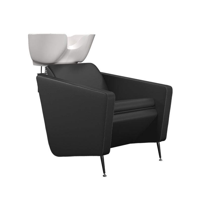Einzelwaschanlage mit kippbarem Becken. Schwarzen Bezug.