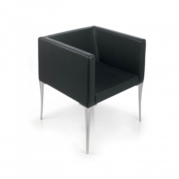 Kubichair 2 ist eine Zweisitzer-Wartebereichsbank. Sitzfläche und Rückenlehne sind mit Skai gepolstert oder Samt (in verschiedenen Farben erhältlich).