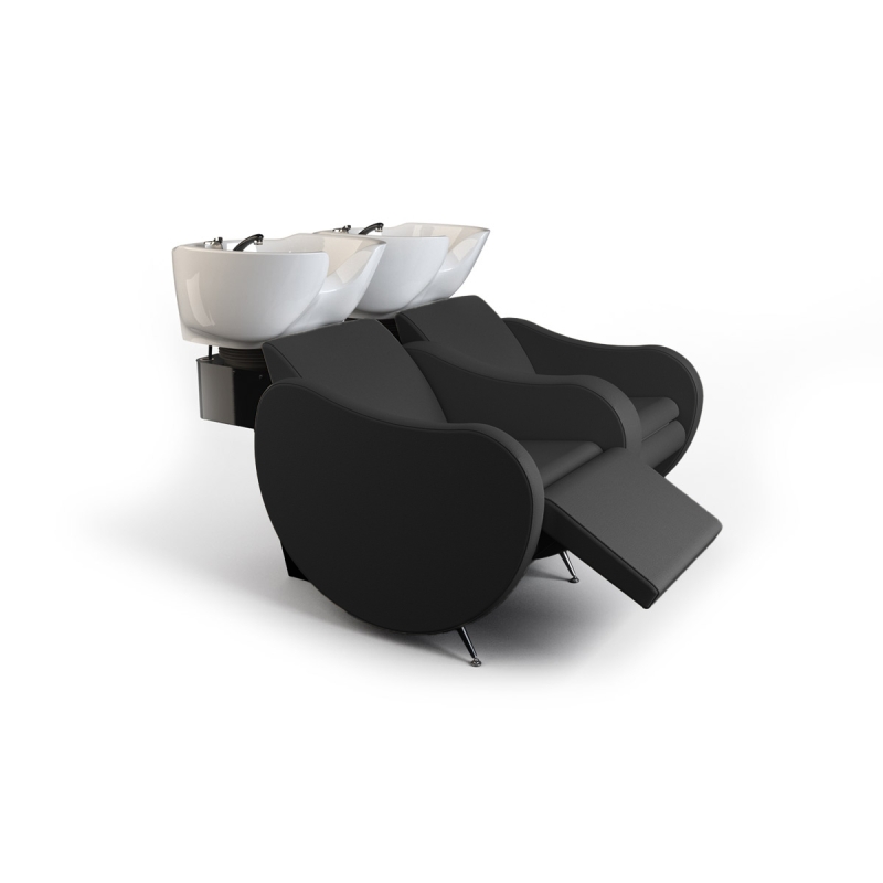 Doppelwaschanlage. Schwarzen Bezug erhältlich.