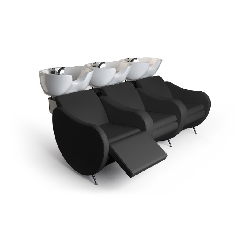 Dreifachwaschanlage mit elektrischer beinstütze un verstellbare Schüssel. Schwarzen Bezug.