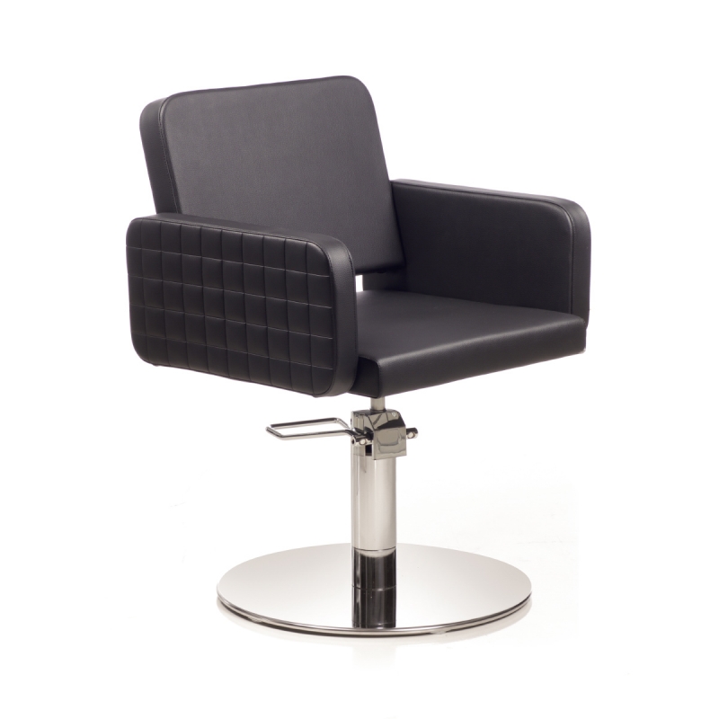 Olma CPT Roto Black ist ein Frisiersalonstuhl mit hydraulisch arretierbarer Pumpe und Roto-Basis aus Stahl. CPT schwarz Skai Farbe Capitonné-Stil.