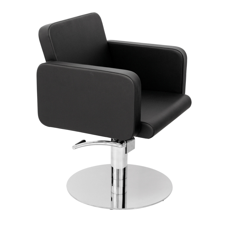 Friseurstuhl mit Supersilver Fuß, hydraulischer Pumpe und Blockierung. Schwarzen bezug.
