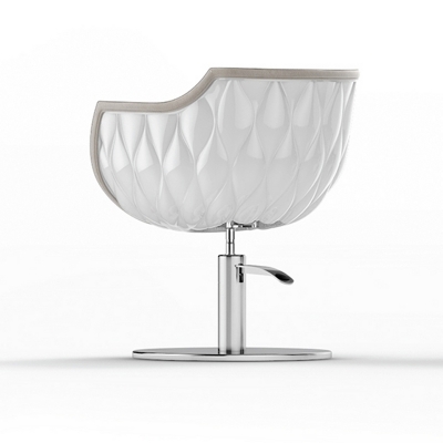 Dieser gehobene Frisierstuhl verleiht jedem modernen Salon einen dynamischen Stil. Die Halbkreisform hat eine hochglänzende Schale in Polymerweiß. Der Sitz ist mit Skai bezogen (in verschiedenen Farben erhältlich), das langlebig und leicht zu reinigen und zu pflegen ist.