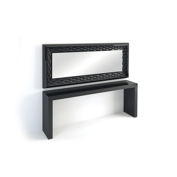 Wandfrisierstation mit zwei Sitzplätzen. Rahmen und Ablage in Schwarz oder Weiß erhältlich.
