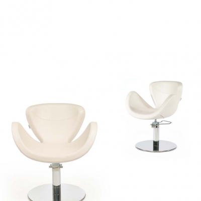Dieser drehbare Frisierstuhl wird ohne Untergestell geliefert. Die Struktur besteht aus Holz und Polyurethanmaterial, das mit Vinyl bezogen ist (in verschiedenen Farben erhältlich)
