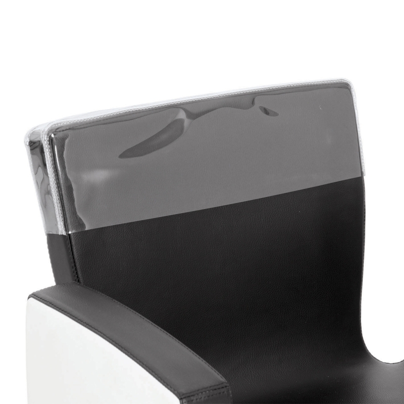 Transparenter Kunststoffbezug, passgenau auf den gewünschten Friseurstuhl abgestimmt.