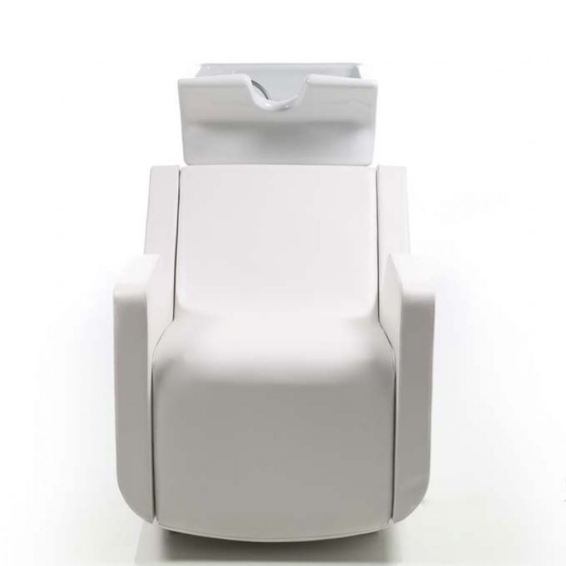 Unsere komfortable Shampoo-Einheit wird mit einer quadratischen Kippschüssel (erhältlich in weißer oder schwarzer Keramik) mit einem Sitz in halb liegender Position geliefert, der in einer Vielzahl von Materialien erhältlich ist.