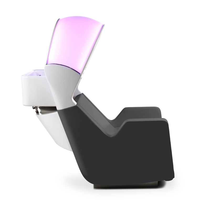 Shampoo-Station mit Chromatherapie-System. Weiß Becken. Nur schwarzer Skai.
